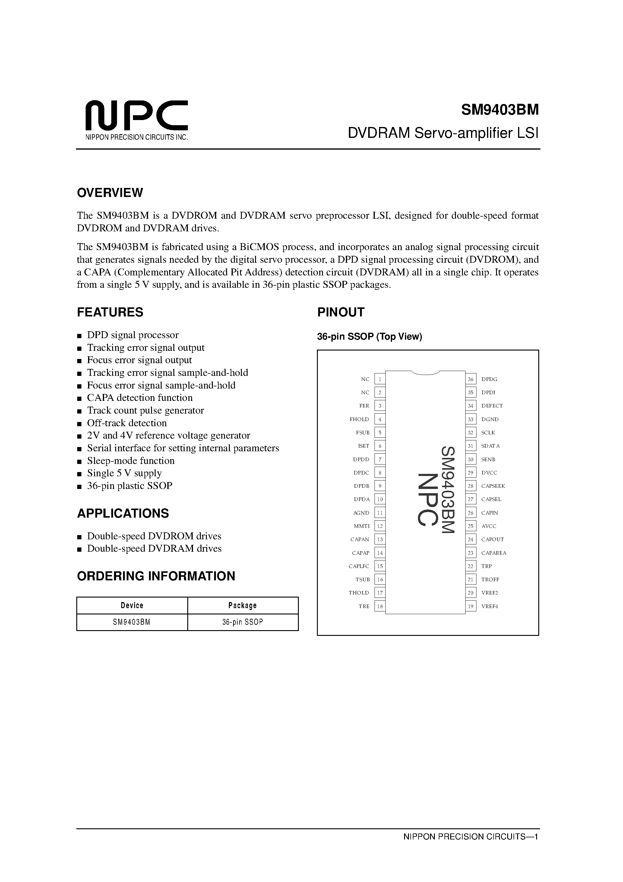 SM9403BM-DVDRAM Servo-amplifier LSI