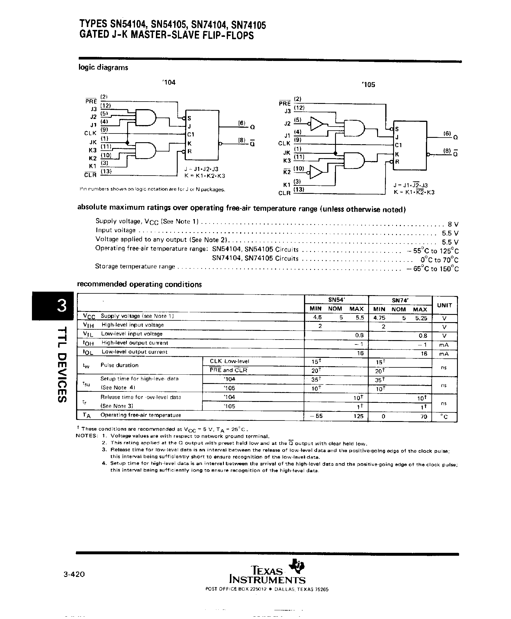 SN74104-Gated J-K Master-Slave Flip-Flops