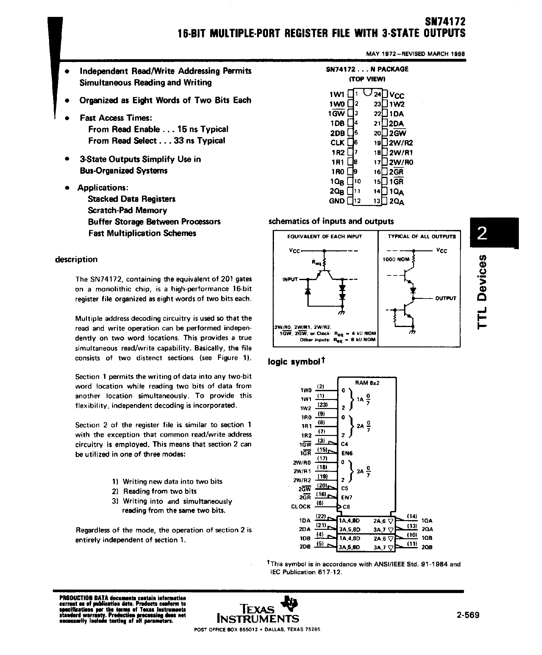 SN74172-16 Bit Multiple Port Register File with 3 State Outputs