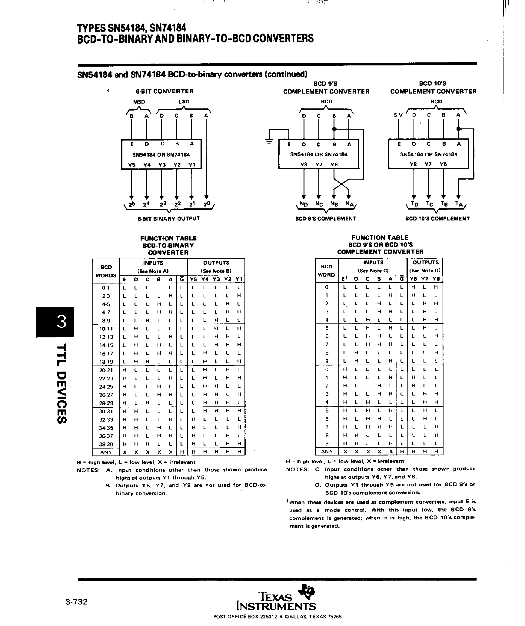 SN74184-BCD TO BINARY AND BINARY TO BCD CONVERTERS