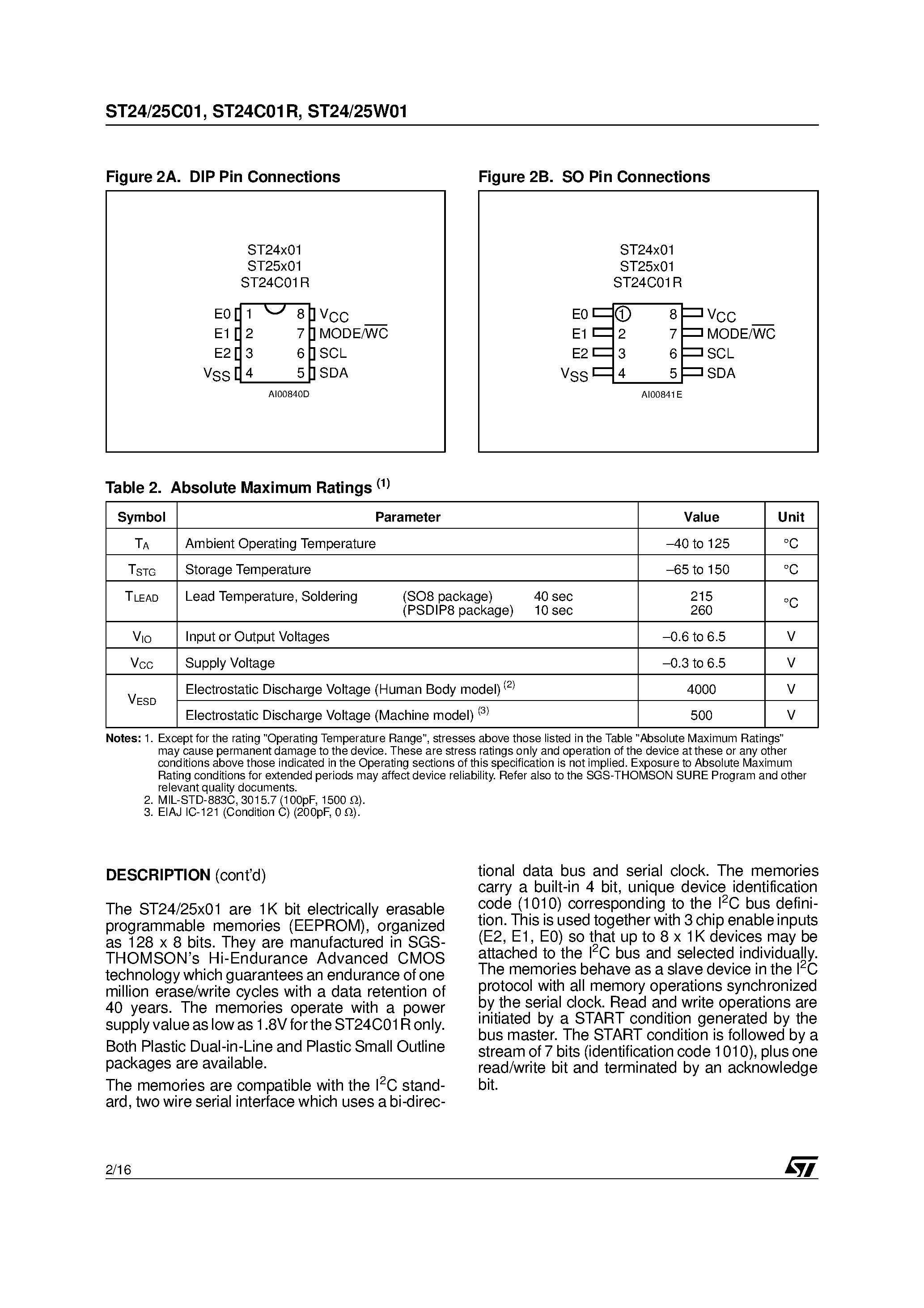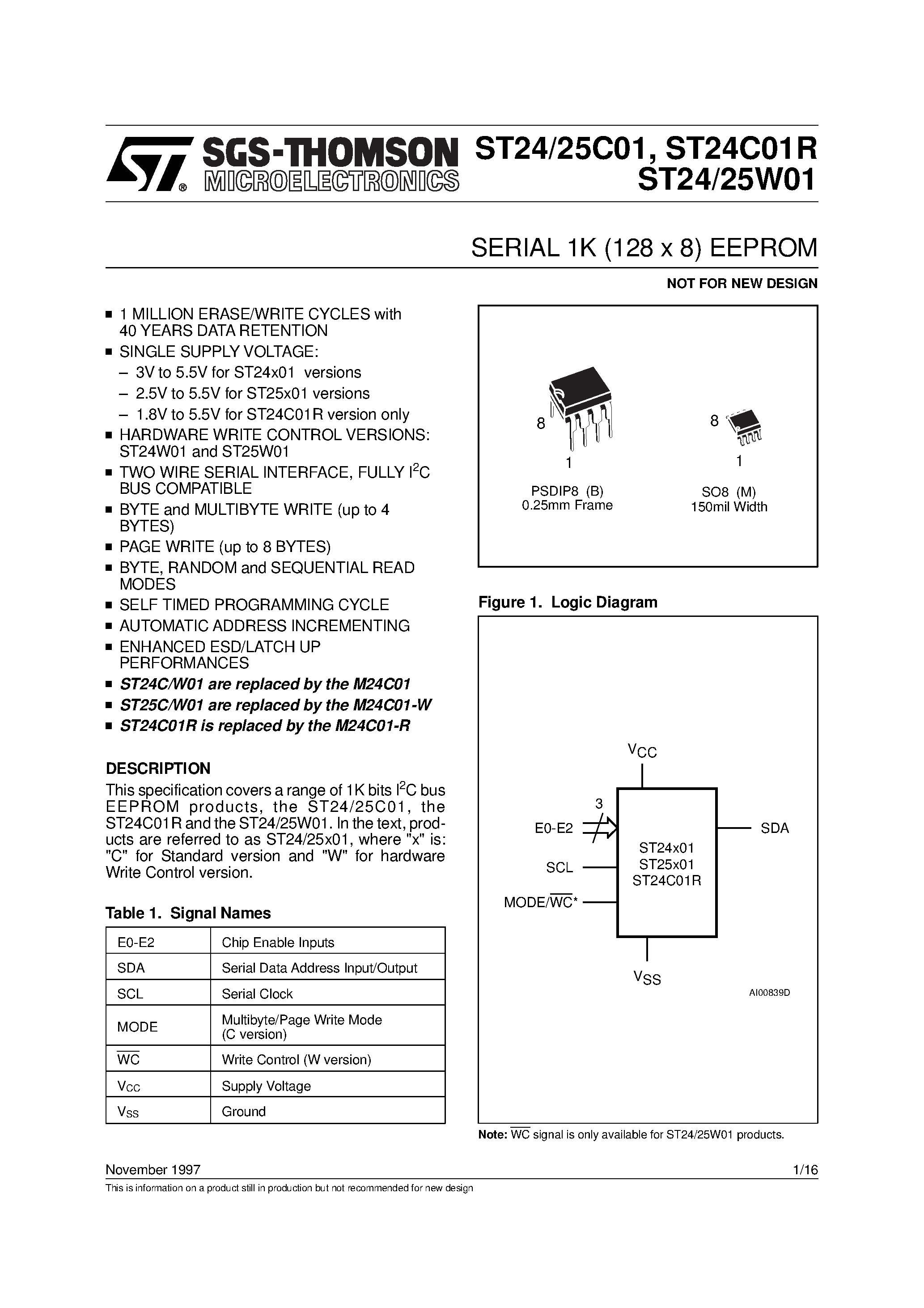 Даташиты (Datasheets ST24W01) электронных компонентов