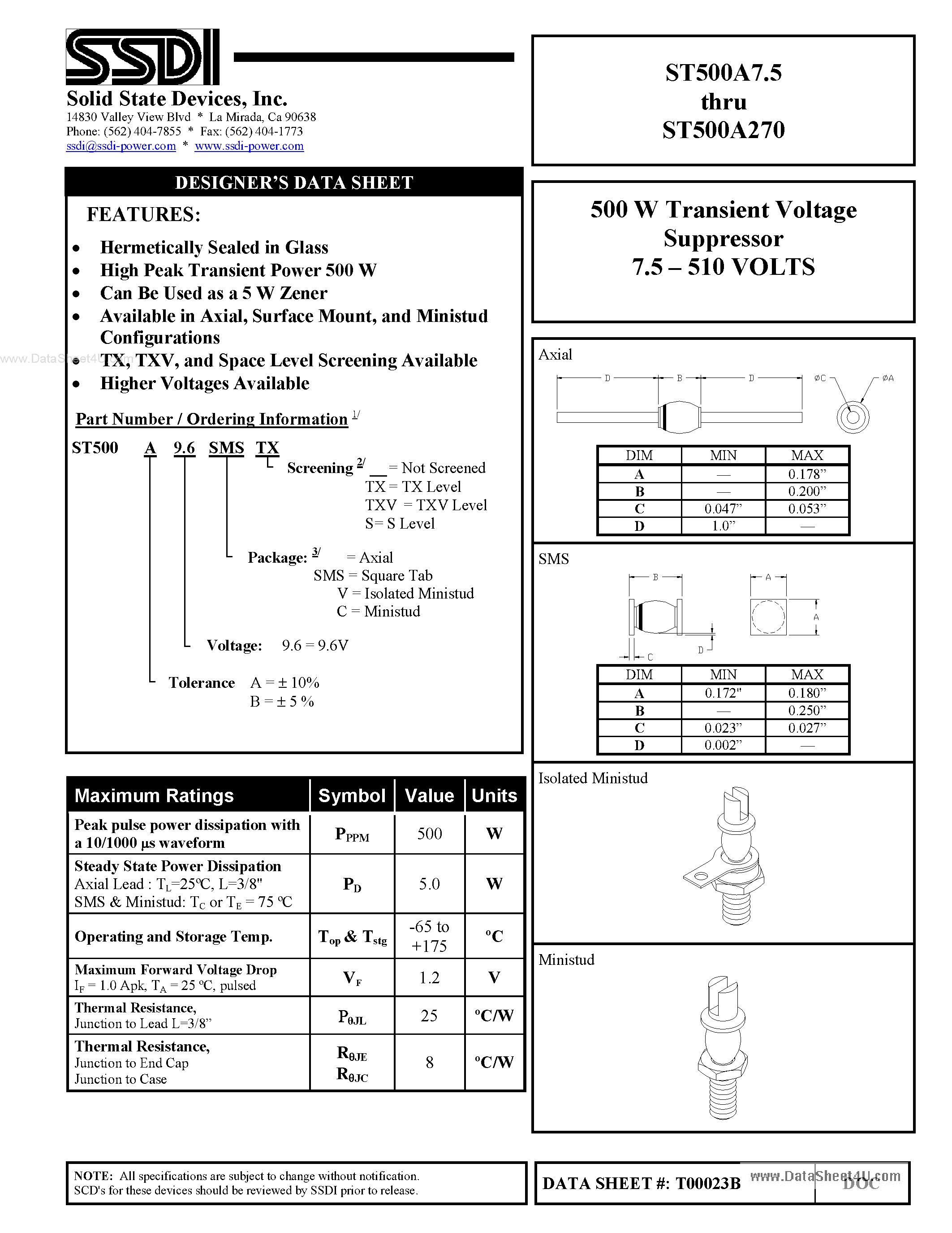 ST500A270-(ST500Axxx) 500 W Transient Voltage Suppressor