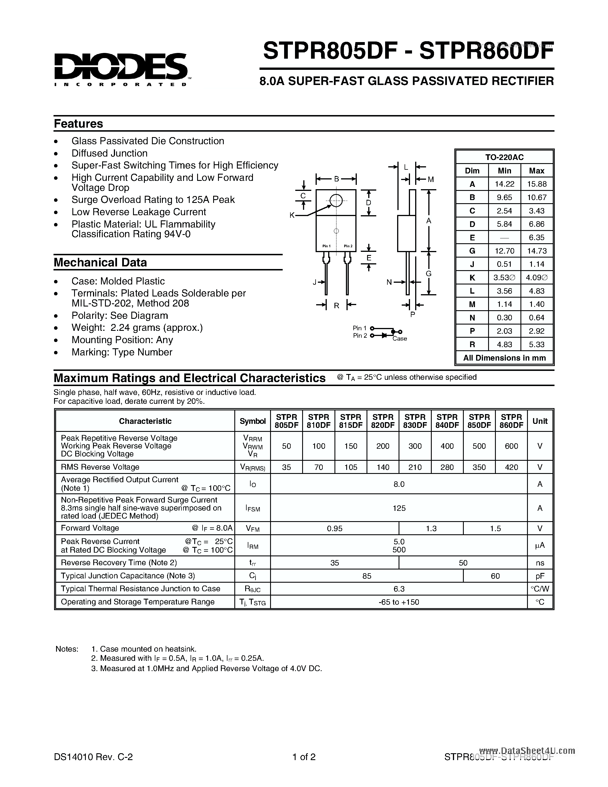STPR805DF-8.0A SUPER-FAST GLASS PASSIVATED RECTIFIER