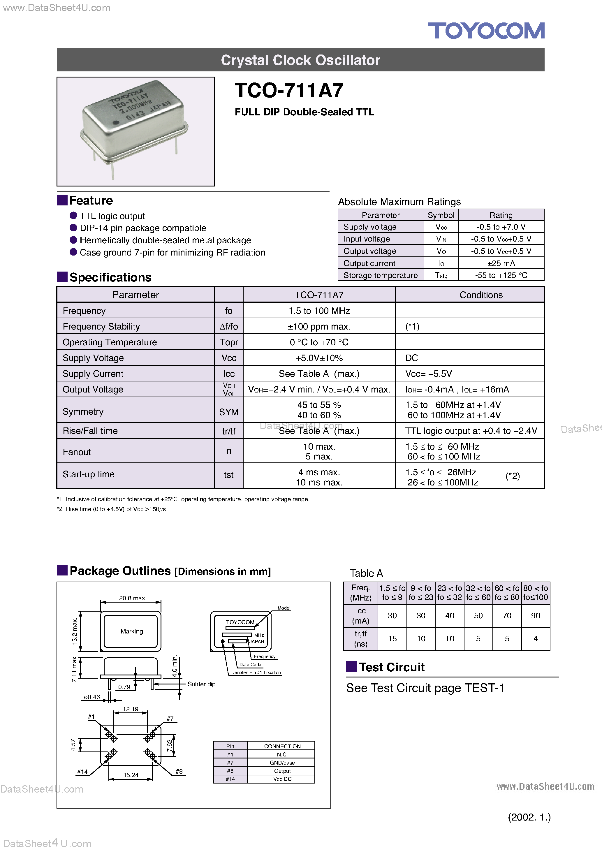 TCO-711A7-Full DIP Double Sealed TTL Crystal Clock Oscillator