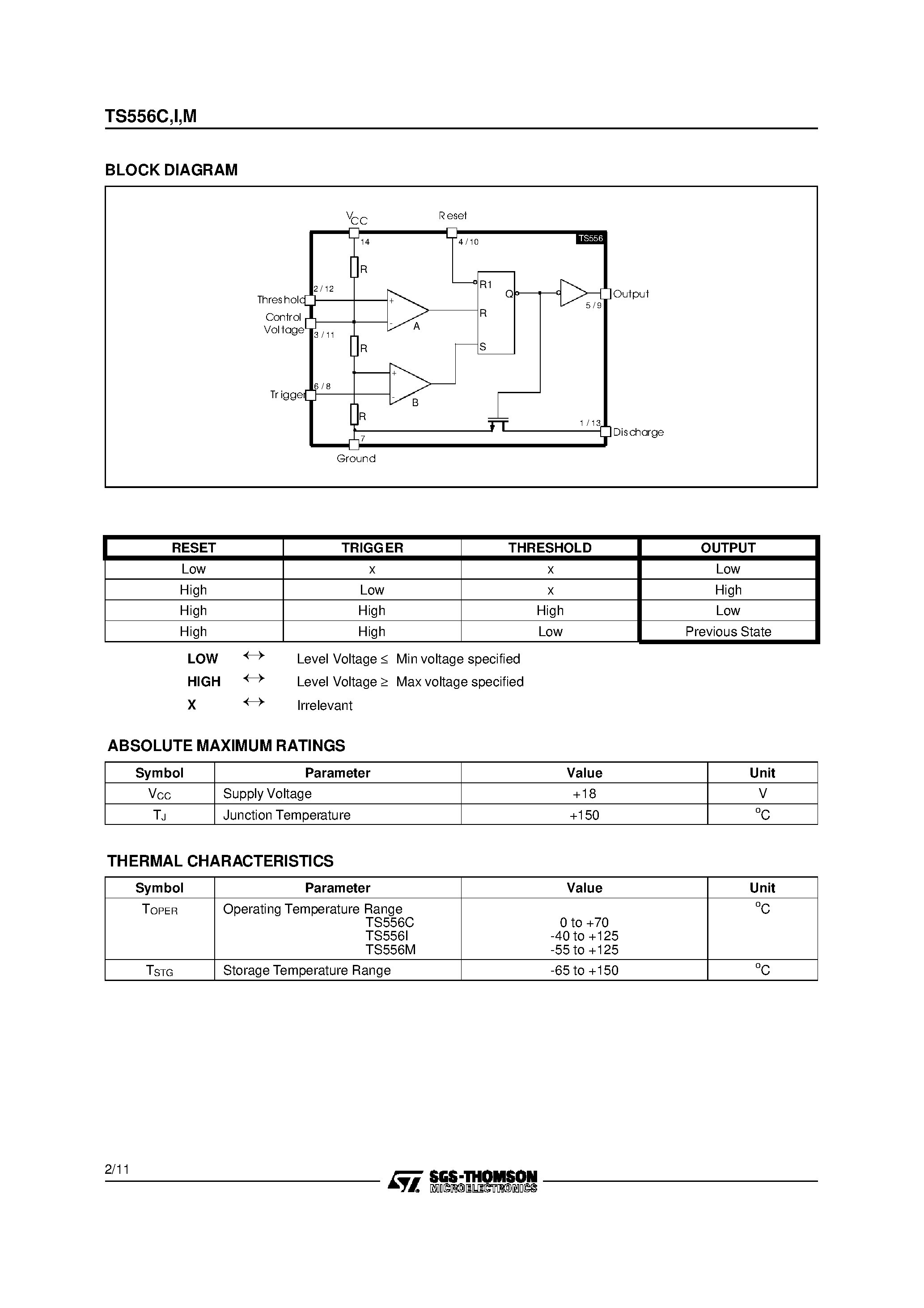 TS556IN-LOW POWER DUAL CMOS TIMERS