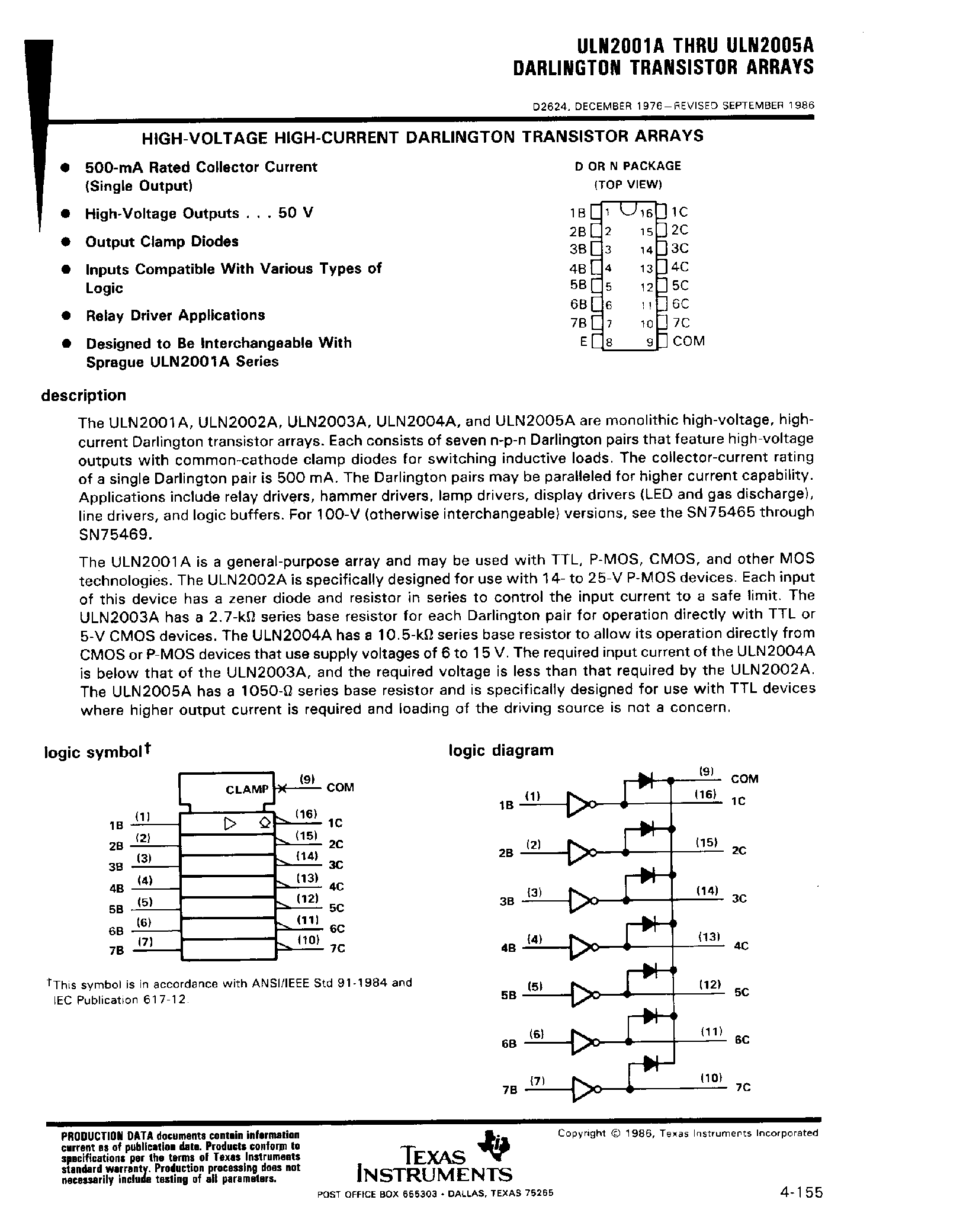 ULN2005A-(ULN2001A - ULN2005A) Darlington Transistor Arrays