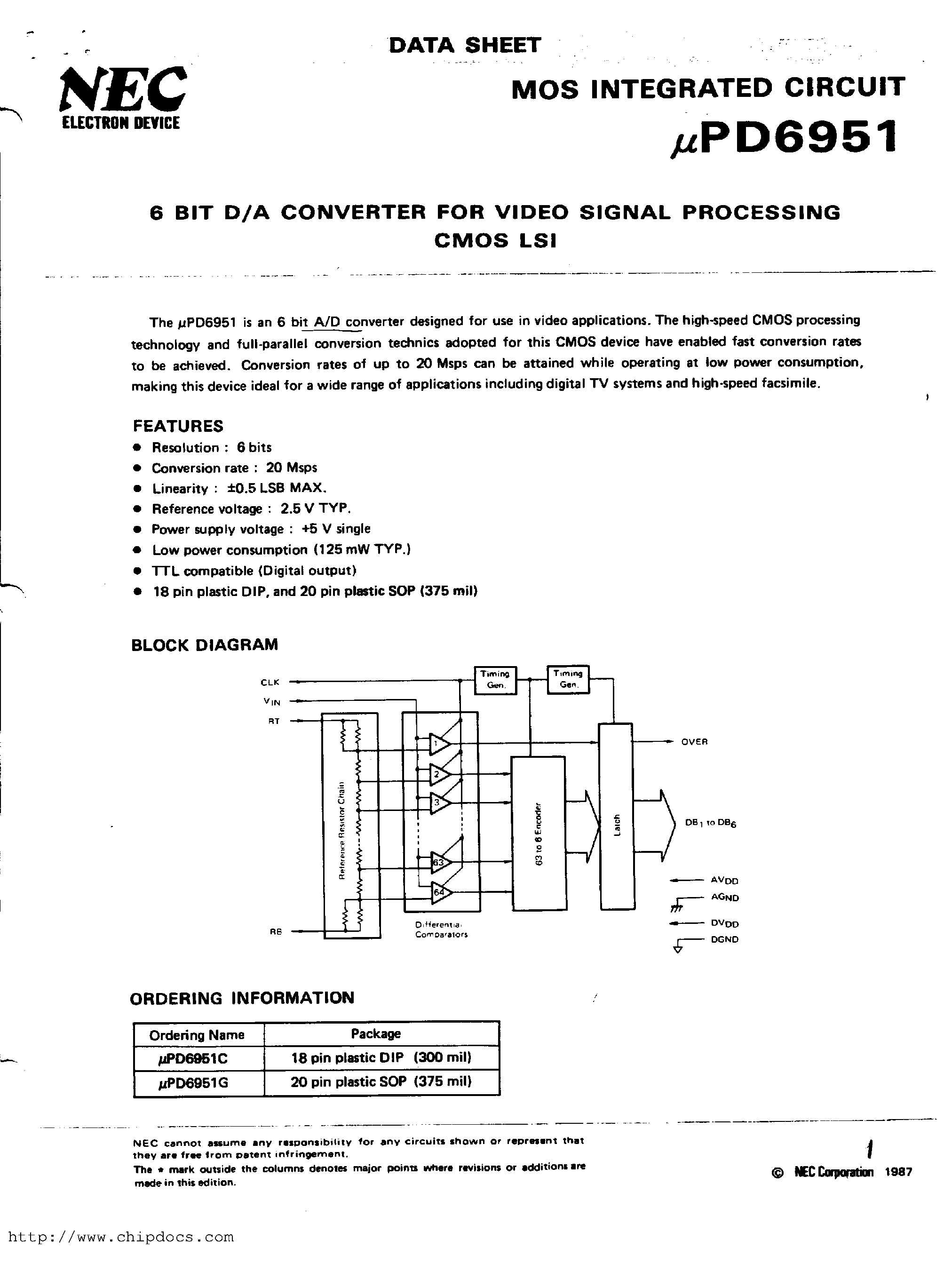 UPD6951G-6 BIT D/A CONVERTER FOR VIDEO SIGNAL PROCESSING CMOS LSI