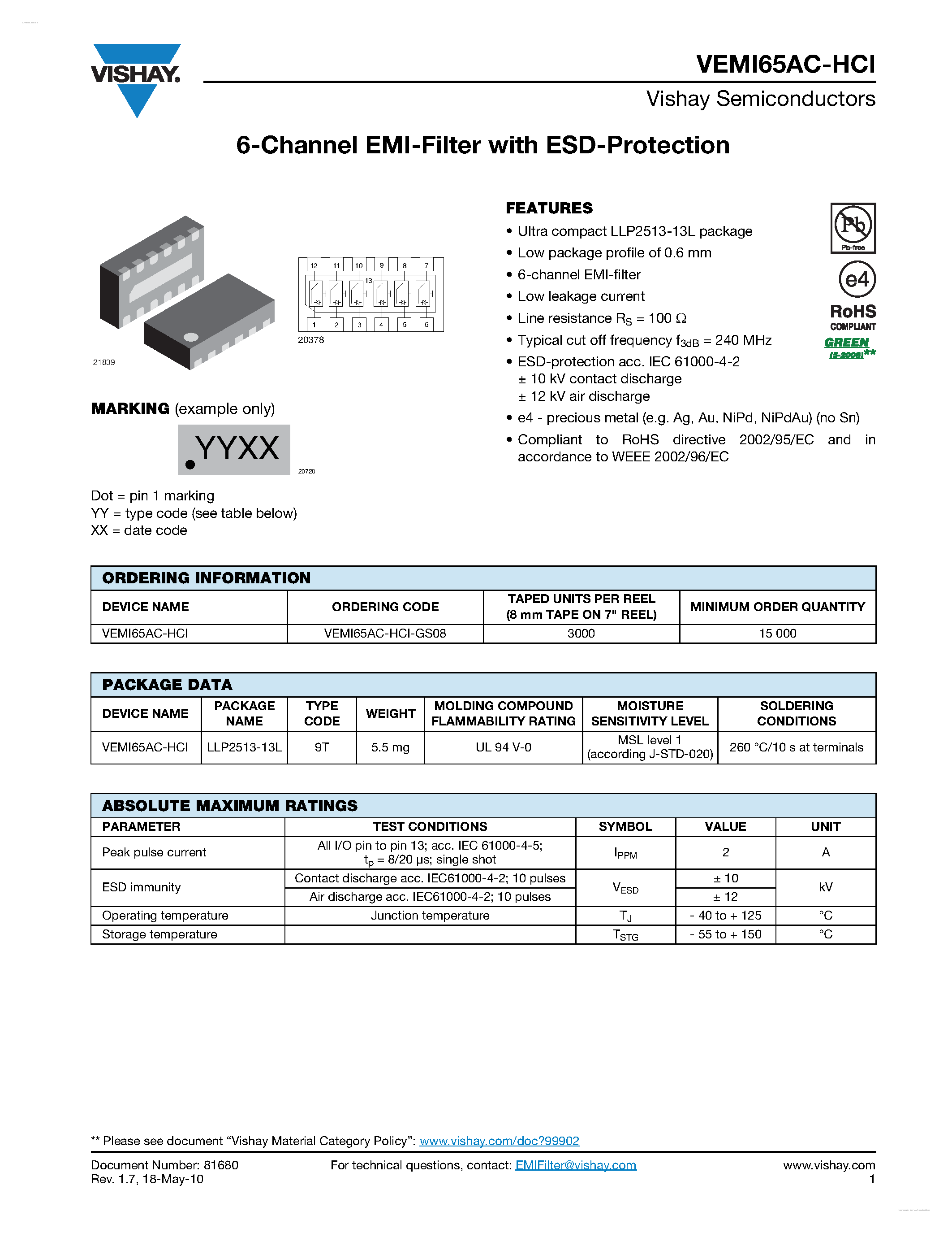 Даташиты (Datasheets VEMI65AC-HCI) электронных компонентов