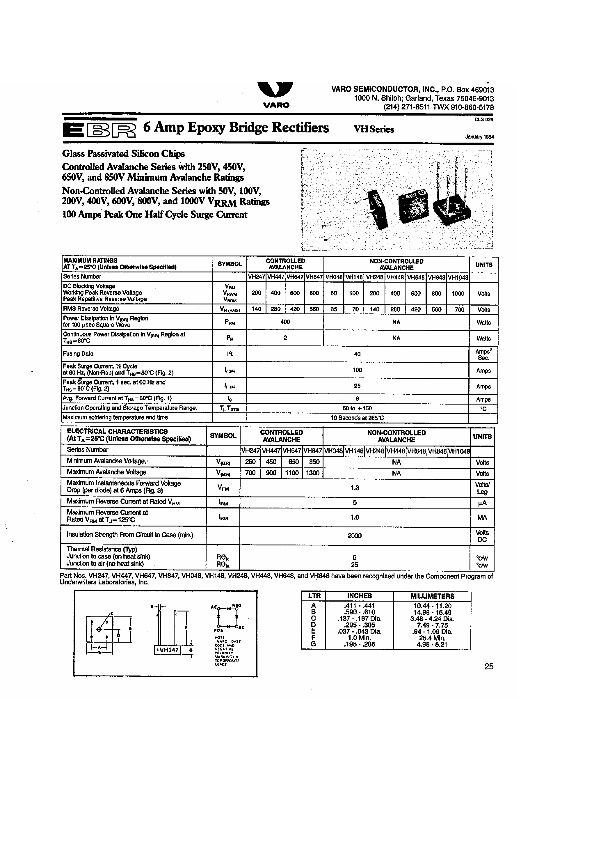 VH148-6 Amp Epoxy Bridge Rectifiers
