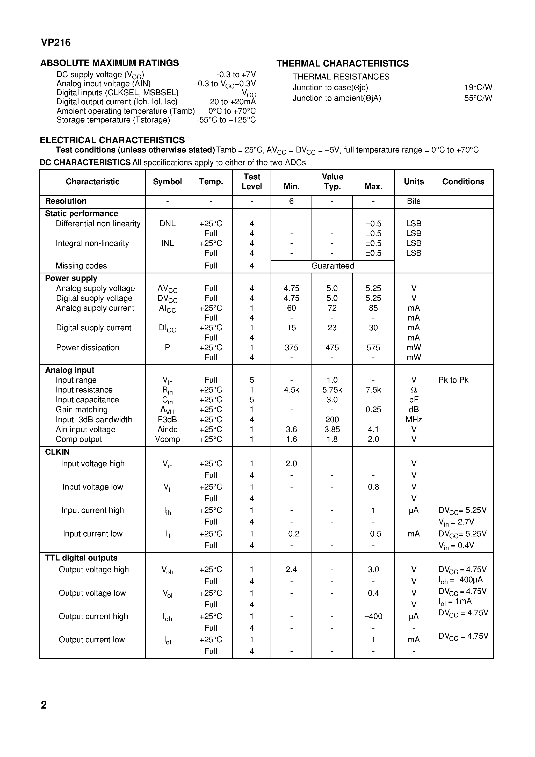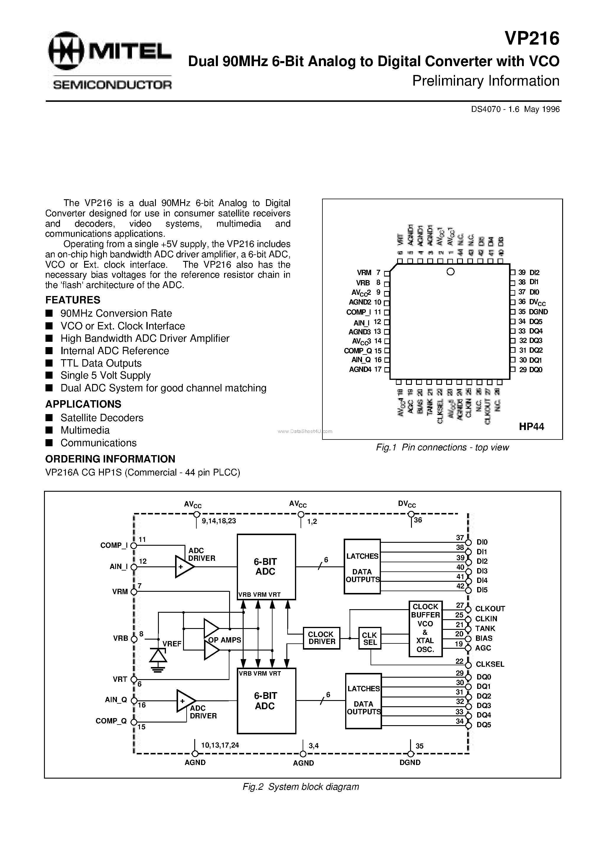 VP216-Dual 90MHz 6-Bit Analog to Digital Converter with VCO