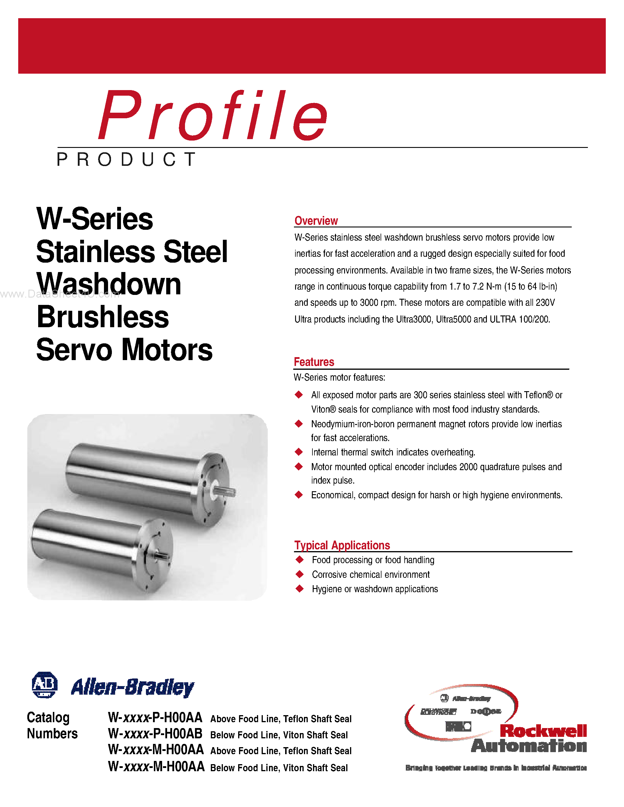 W-3016-N-H00AA-(W-xxxx-N-H00AA) Stainless Stell Washdown Brushless Servo Motors