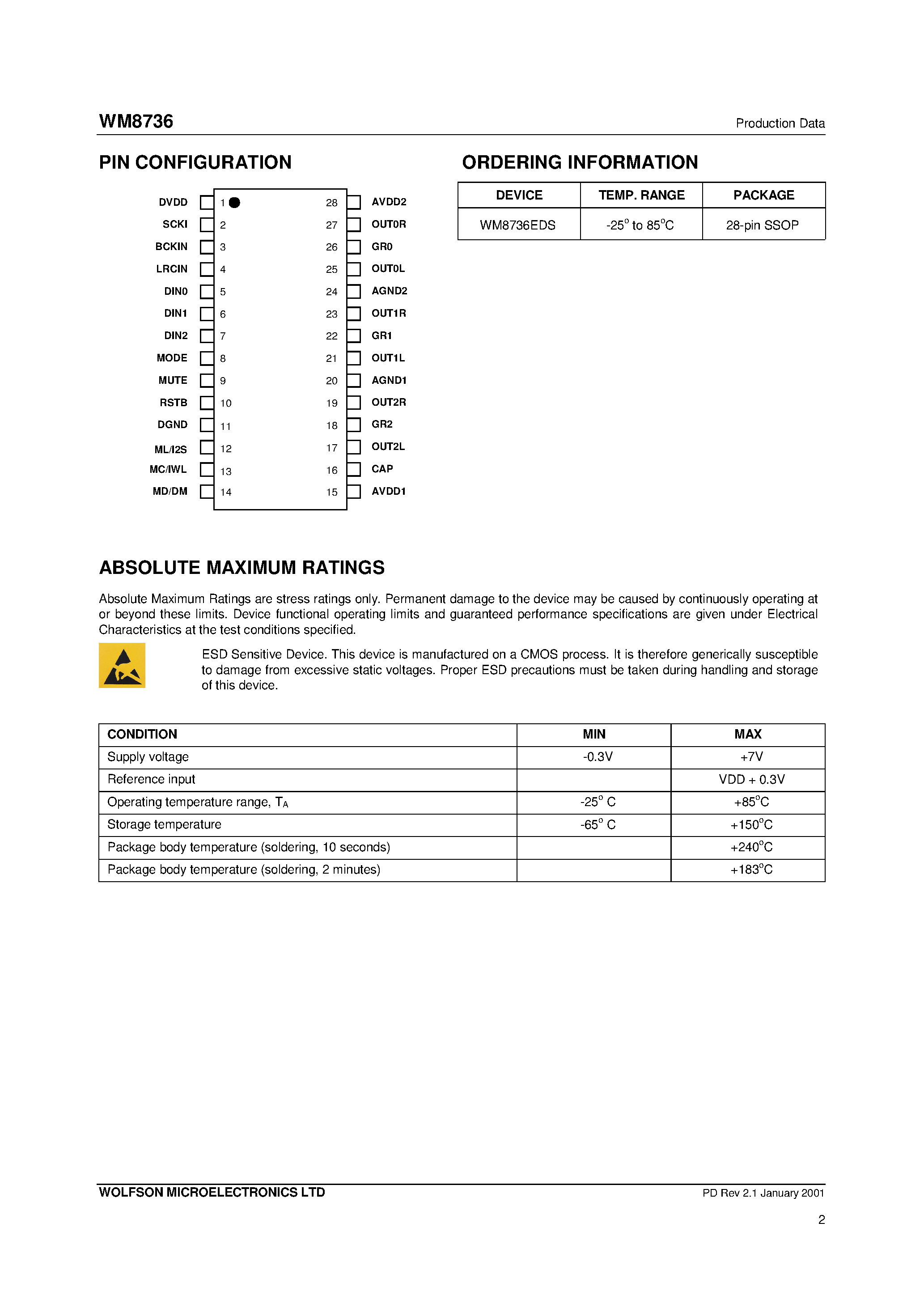 Даташиты (Datasheets WM8736) электронных компонентов