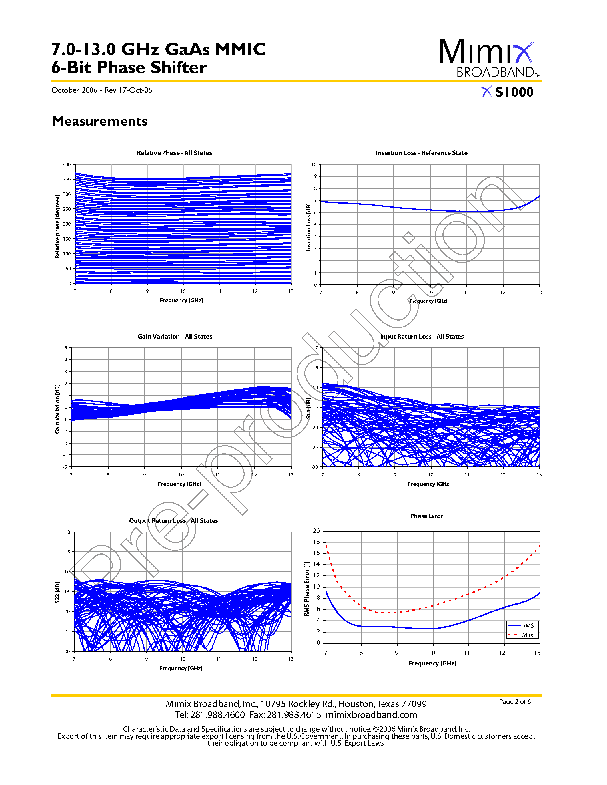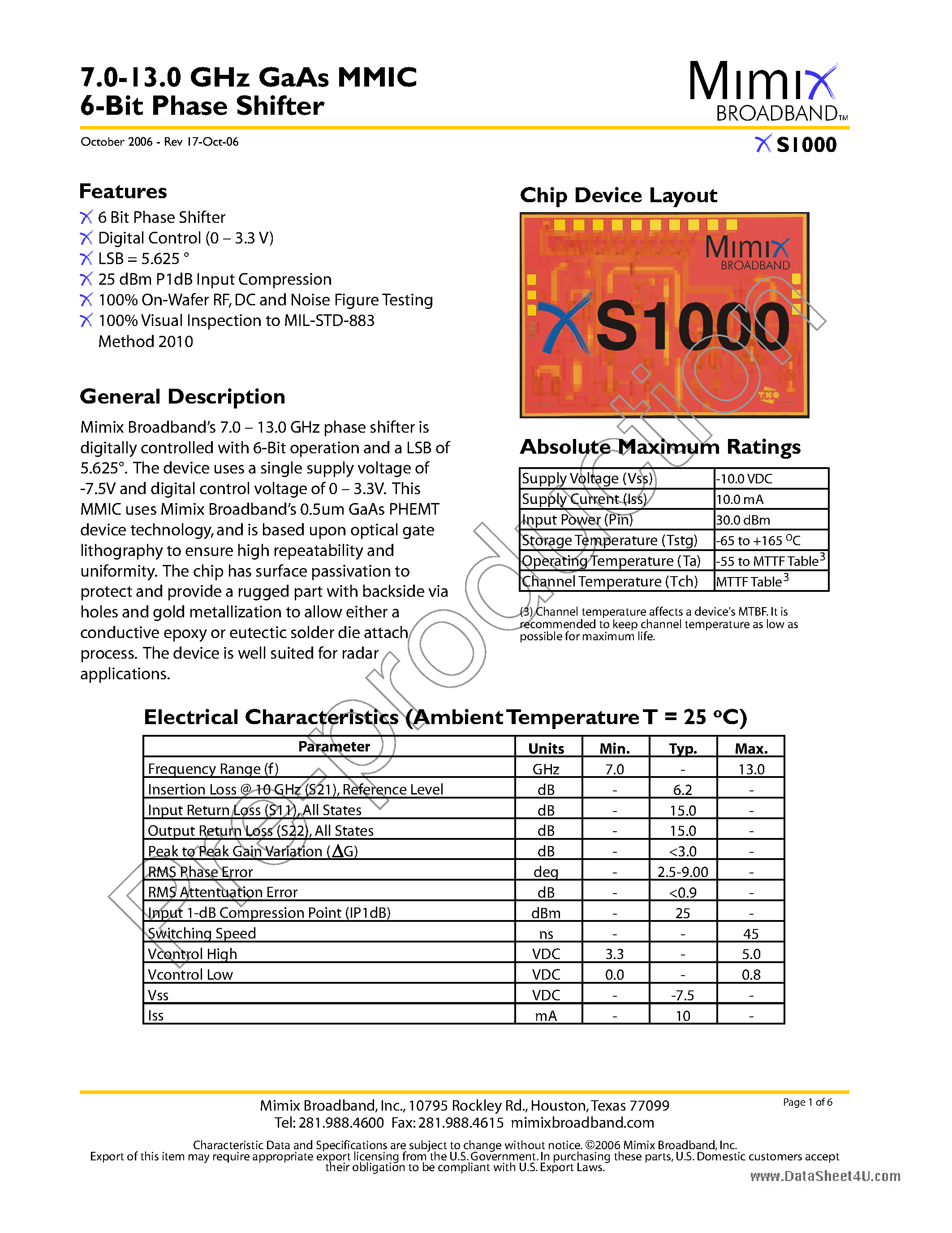 XS1000-GaAs MMIC 6-Bit Phase Shifter