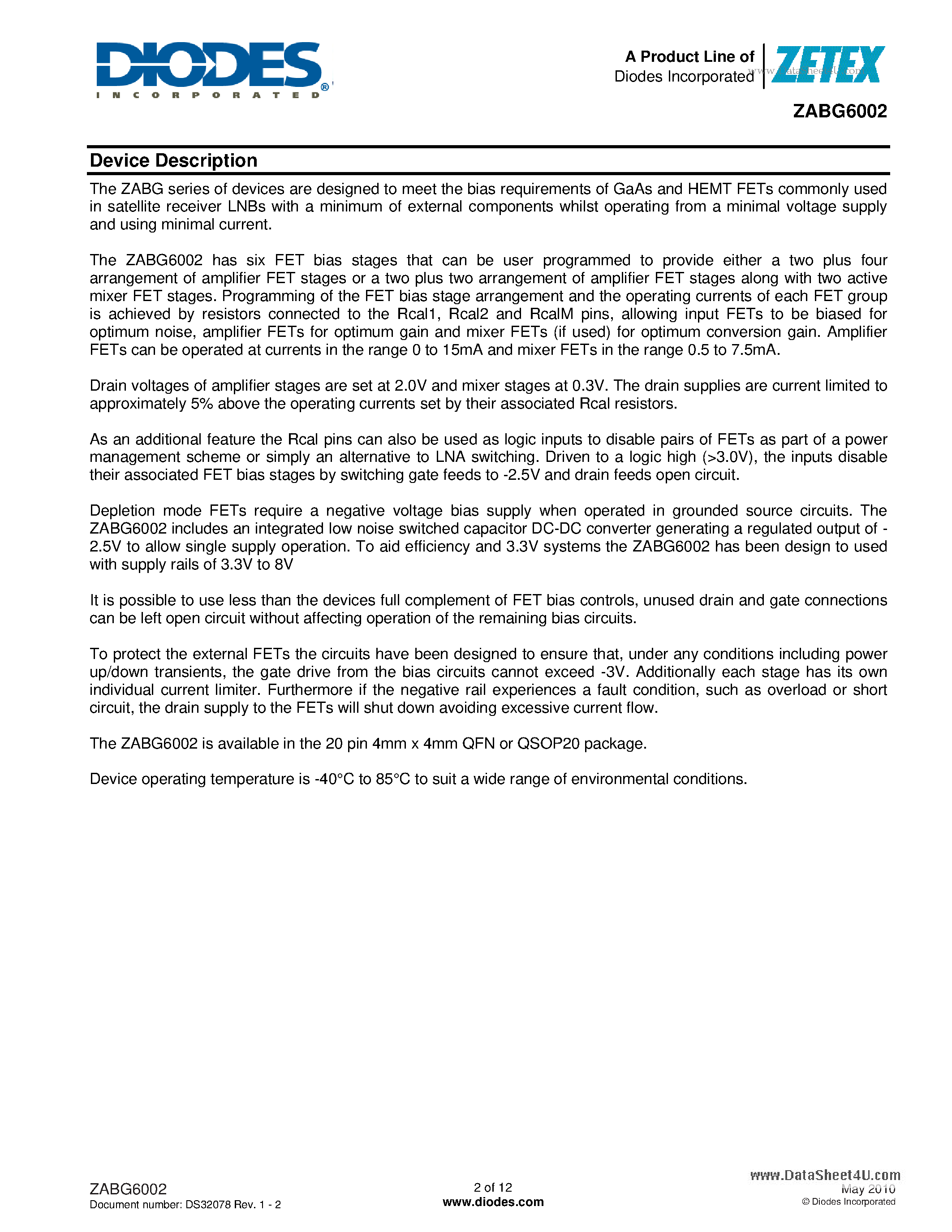 Даташиты (Datasheets ZABG6002) электронных компонентов