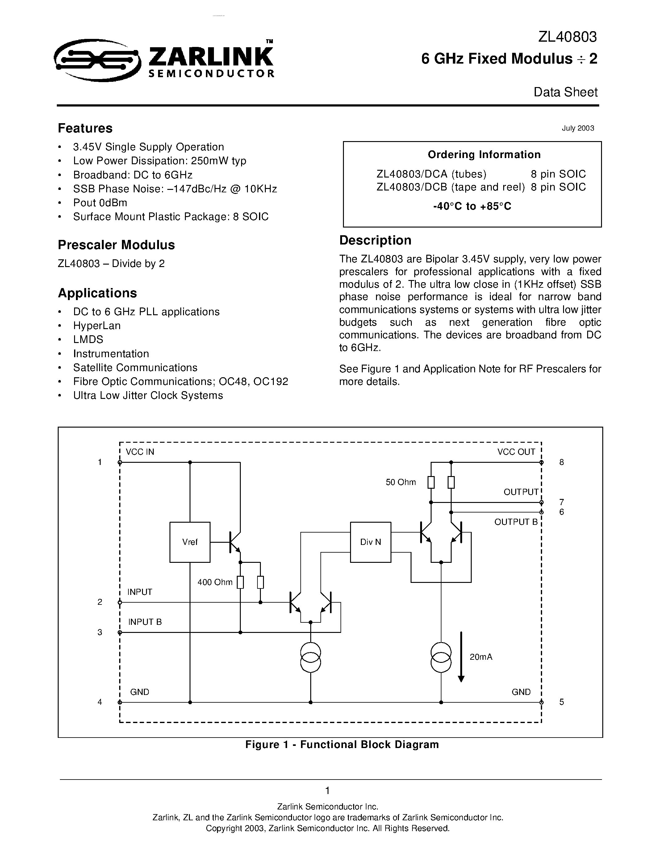 ZL40803-6 GHz FIXED MODULUS DEVIDE 2
