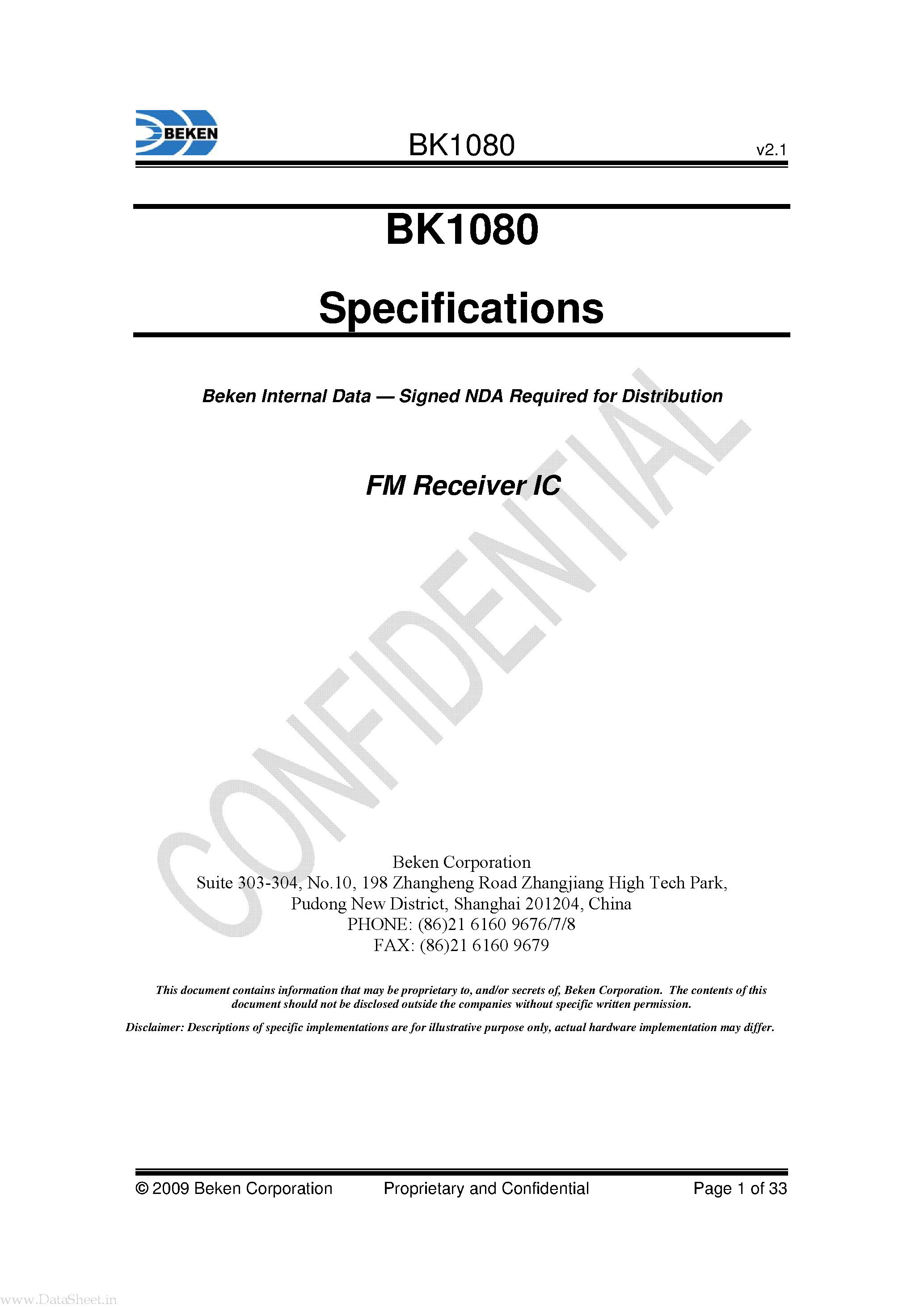 Даташиты (Datasheets BK1080) электронных компонентов