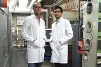 In a study led by Dr Sharath Sriram, Drs Sumeet Walia, pictured left, and Amgad Rezk have examined the use of sound waves to change the electronic properties of 2D materials. The researchers say their findings have important implications for electronics and optoelectronic devices made from 2D materials and believe their work could herald a new era of highly efficient solar cells and smart windows.