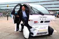 Pic: Eric Chan, principal technologist at Transport Systems Catapult, unveils first LUTZ Pathfinder pod vehicle