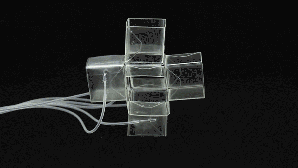 The structure is inspired by an origami technique called snapology, and is made from extruded cubes with 24 faces and 36 edges. Like origami, the cube can be folded along its edges to change shape. The team claims to have demonstrated, both theoretically and experimentally - with a centimetre-scale prototype, that the cube can be deformed into many different shapes by folding certain edges, which act like hinges. The team embedded pneumatic actuators into the structure, which can be programmed to deform specific hinges, changing the cube’s shape and size, and removing the need for external input.