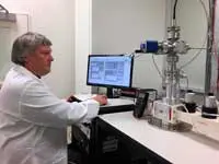 Pic: Evince's CEO Dr Gareth Taylor with a processing tool being developed by the company