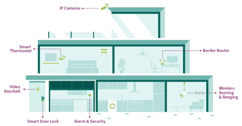 Bluetooth LE 6.0 features include channel sounding, which can support ranging and position awareness, while IEEE 802.15.4 Thread brings mesh networking capabilities that Matter-enabled products use for secure and scalable smart-home connectivity.