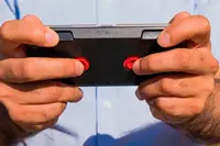 Instead of having control interfaces on the screen that obscure the screen area used for gaming, Flitchio has two shoulder buttons and two ultrathin joysticks on the back surface of the case.