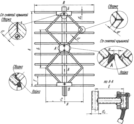 Все элементы антенны укрепляются на стреле, и изготавливаемой, как правило, из тонкостенной трубки диаметром 25-30 мм с помощью сварки или промежуточных деталей (см. рис. 10).