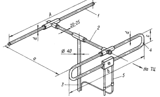 Диаметр проводов антенны определяется так: d = (0,016...0,02)lдл.max. Это значит, что для работы на 1-4-м каналах антенна должна изготавливаться из трубок диаметром 100-120 мм и 50-65 мм- для работы на 5-м канале, а для 6-11-го каналов - из труб диаметром 30-35 мм и 20-27 мм - для 12-го канала. Совершенно ясно, что сделать полотно наружной антенны из труб такого диаметра трудно, антенна будет иметь очень большую массу, а учитывая эффект парусности и ветровую нагрузку, конструкция антенны потребует значительного усиления несущих частей.