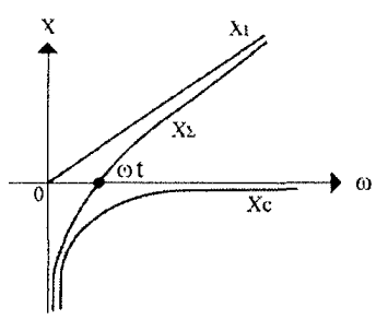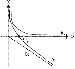 Зависимости реактивных сопротивлений катушки XL и конденсатора ХC от круговой частоты ω