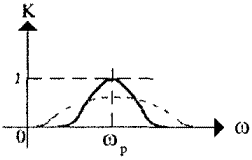 Частотные свойства различных цепей в технике принято оценивать с помощью амплитудно-частотных характеристик (АЧХ). На рис. 4а и рис. 4б представлены два простейших четырехполюсника, содержащих последовательный колебательный контур. АЧХ этих цепей приведены (показаны сплошными линями) на рис. 5а и рис. 5б соответственно. По вертикальной оси отложена величина коэффициента передачи цепи по напряжению К, показывающая отношение выходного напряжения цепи к входному. Для пассивных цепей (не т.е. содержащих усилительных элементов и источников энергии), величина К никогда не превышает единицу. Очевидно, что сопротивление цепи на рис. 4а переменному току будет минимально при частоте воздействия, равной резонансной частоте контура. В этом случае коэффициент передачи цепи близок к единице (определяется омическими потерями в контуре). На частотах, сильно отличающихся от резонансной, сопротивление контура переменному току достаточно велико, а следовательно, и коэффициент передачи цепи будет падать практически до нуля. При резонансе в цепи, изображенной на рис. 4б, источник входного сигнала оказывается фактически замкнутым накоротко малым сопротивлением контура, благодаря чему коэффициент передачи такой цепи на резонансной частоте падает практически до нуля (опять-таки в силу наличия конечного сопротивления потерь). Наоборот, при частотах входного воздействия, значительно отстоящих от резонансной, коэффициент передачи цепи оказывается близким к единице. Свойство колебательного контура в значительной степени изменять коэффициент передачи на частотах, близких к резонансной, широко используется на практике, когда требуется выделить сигнал с конкретной частотой из множества ненужных сигналов, расположенных на других частотах. Так, в любом радиоприемнике при помощи колебательных цепей обеспечивается настройка на частоту нужной радиостанции. Свойство колебательного контура выделять из множества частот одну принято называть селективностью или избирательностью. При этом интенсивность изменения коэффициента передачи цепи при отстройке частоты воздействия от резонанса принято оценивать при помощи параметра, называемого полосой пропускания. Чаще всего за полосу пропускания принимается диапазон частот, в пределах которого уменьшение (или увеличение - в зависимости от вида цепи) коэффициента передачи относительного его значения на резонансной частоте, не превышает величины 0,707 (3дБ).
