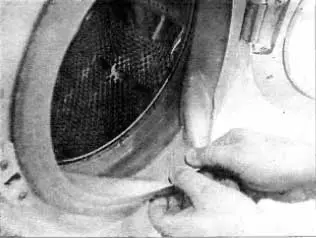 Люк предназначен для загрузки/выгрузки белья Он имеет дверцу и запорное устройство Для предотвращения выливания воды из бака к последнему крепится манжета (или уплотнитель дверцы), ее внешний вид показан на рис 10 Один край манжеты крепится непосредственно на баке, а второй — на передней крышке СМ (эти края закрепляются специальными хомутами) Дверца люка в закрытом состоянии плотно приегает к краю манжеты, тем самым, предотвращая выливание воды из бака. В СМ с вертикальной загрузкой также имеется манжета, ее внешний вид показан на рис. 11.