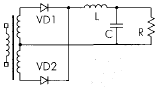 Схемы двухполупериодных выпрямителей со средней точкой и удвоителем тока с силовым трансформатором, фильтром и нагрузкой приведены на рис.1. Выпрямитель с удвоителем тока (см. рис.1 б) имеет ряд преимуществ перед выпрямителем со средней точкой (см. рис. 1а): в нем используется двухобмоточный трансформатор, который легко интегрируется с дросселями L1, L2; пульсации токов находятся в противофазе, следовательно, пульсации тока нагрузки меньше.