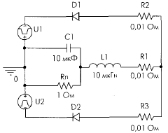 Рис. 6 Упрощенная модель двухполупериодного выпрямителя с удвоителем тока