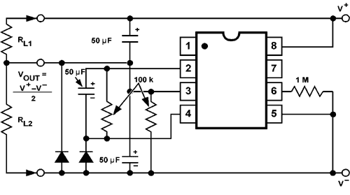 С помощью микросхемы ICL7660 можно получить умощненный делитель напряжения при включении ее, как показано рис.14.