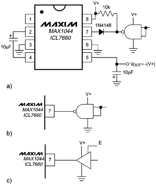 Рассмотрим типовые схемы включения микросхемы ICL7660.