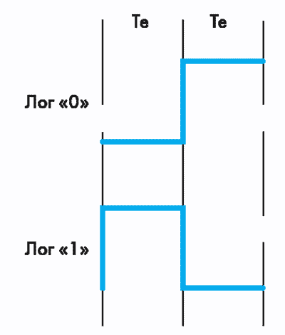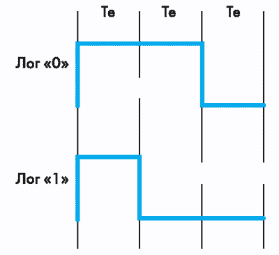 Модуль ССР в режиме сравнения может использоваться для формирования различных форматов модуляции. На рис. 10-12 приведены различные варианты представления 0 и 1 в различных форматах передачи данных. Передача данных похожа на асинхронную передачу данных, содержащую СТАРТ-бит, восемь информационных бит и СТОП-бит. Время ТЕ является базовым временным элементом в каждом формате модуляции и задает скорость передачи данных. Триггер специального события может использоваться для формирования времени ТЕ. При возникновении прерывания от CCP подпрограмма обработки прерывания формирует требуемый формат передачи данных.