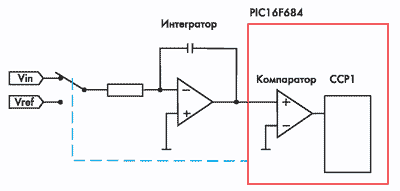 Рис. 22. АЦП двойного интегрирования с применением модуля ССР
