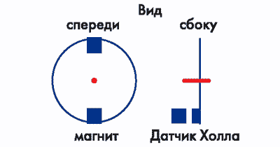Скорость вращения энкодера может быть измерена разными способами. Два наиболее часто встречающихся типа датчиков в энкодерах - это оптический сенсор и датчики Холла. Оптические энкодеры используют инфракрасный светодиод и датчик, а также колесо с прорезями, модулирующими световой поток (рис. 5). Другой тип использует чувствительные к магнитному полю датчики Холла, с помощью которых можно определять положение магнитов в электромоторе или постоянных магнитов, закрепленных на вращающемся объекте (рис. 6).