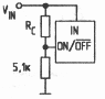 С той же целью можно использовать и вход ON/OFF, простейший вариант применения которого приведен на рис.Зб,в. В схеме, приведенной на рис.Зб, используется любой маломощный транзистор, насыщенный в нормальном режиме работы ИС. При VIN< VIN MIN транзистор закрывается, что "выключает" ПнП (Vo = 0). Для вычисления RВ используется формула