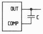 Пример подачи Vo через внешние делители показан на рис.5б. В схеме используются точные резисторы для обеспечения малого производственного допуска Vо, а конденсатор 330 пФ установлен для предотвращения самовозбуждения. RC-цепочка 510 кОм — 0,1 мкФ обеспечивает медленный старт с задержкой от 11 мс (при входном напряжении 6 В) до 4 мс (при 10 В).
