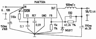 причем в ИС фирмы MAXIM она выбирается по таблице, в зависимости от значений VIN и IO. При отсутствии таковой хорошо подходит значение CSS = 47 нФ.