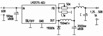 | LM2575HV | 3,3 | 1 | 72 | 52 | 60 | 1,3 | ±4 | 1,23 |