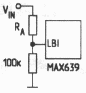 Контроль VIN (Low-Battery Detector, Low-Battery Function). Когда входное напряжение VIN больше минимального значения VIN MIN, на специальный вывод ИС (LBO на МАХ639) поступает сигнал соответствующего логического уровня TTL (логическая "1" для МАХ639). При VIN< VIN MIN уровень изменяется (логический "0" для МАХ639), а это означает, что ПнП может выйти из режима. Для МАХ639 используется схема, приведенная на рис.За, где номинал резистора RA определяется по формуле