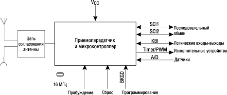 Радиочастотный модуль Panasonic PAN3550 (рис. 5) выполнен на базе многоканального приемопередатчика СС1100 компании Texas Instruments (Chipcon) и микроконтроллера MC9S08GT60 компании Freescale.