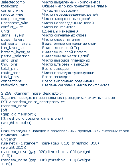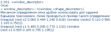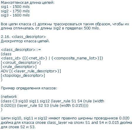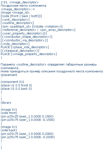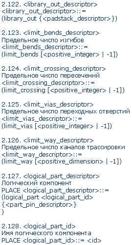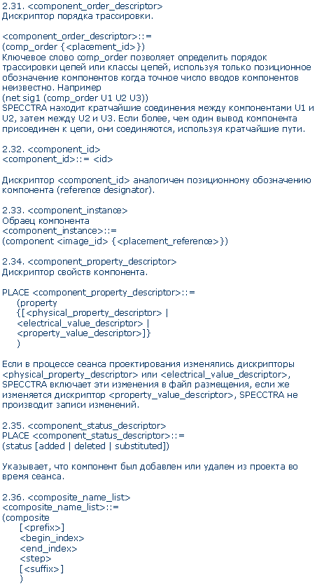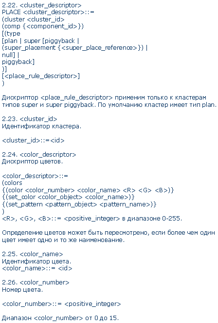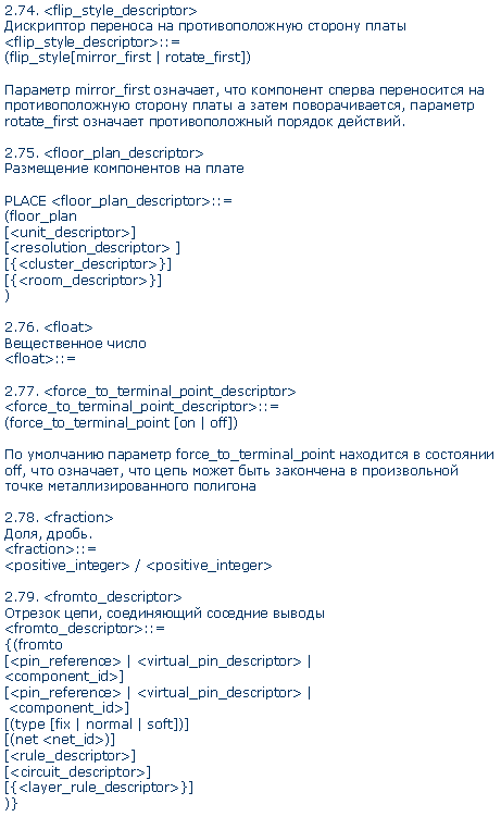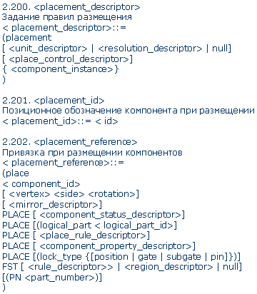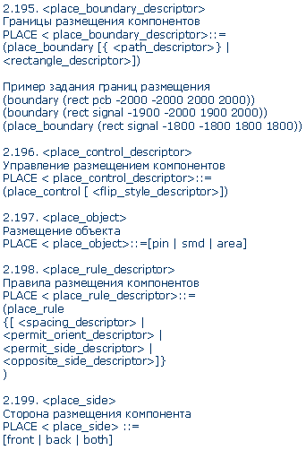 Собственно язык описания задания системы SPECCTRA описан в документации, ниже приведем его основные элементы.При размещении компонентов принята следующая иерархия объектов