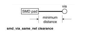 Определение зазора между переходным отверстием и планарной контактной площадкой одной цепи smd_via_same_net