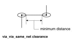 Правило via_via_same_net определяется как минимальный зазор между двумя переходными отверстиями, принадлежащими одной цепи и в одном слое. (Рис. 5).