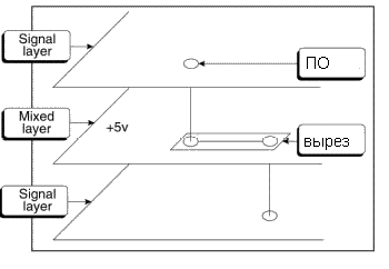 Возможны сигнальный, питания, смешанный тип и перемычка.На рис. 12 приведен пример слоя смешанного типа.