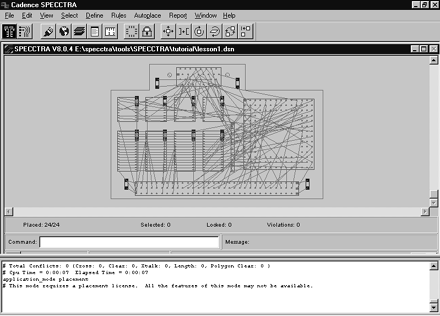 Экран системы SPECCTRA в режиме автоматической трассировки компонентов приведен на рис. 24