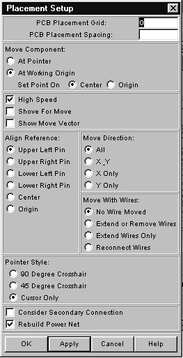 Для размещения компонентов используются команды меню Autoplace. Перед выполнением размещения в меню File выбирают режим размещения Placement Mode.Настройка правил размещения выполняется с помощью команды Autoplace/Setup.Меню этой команды приведено на рис.18.